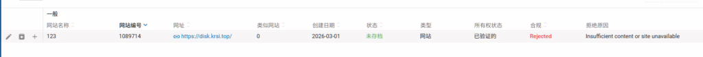 因为网盘没有内容被认为低价值被拒绝了,呜苦呀西